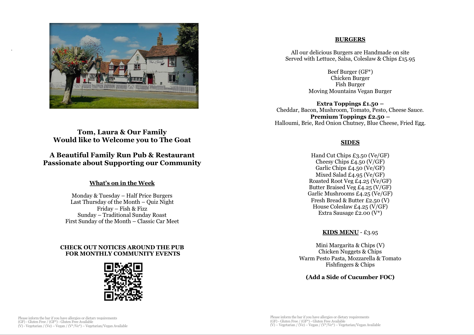 We specialise in traditional British food done well. Choose from classic British pub favourites including a large selection of vegetarian, vegan and gluten free choices all prepared to order. Our ice creams are very unique and are produced at a local dairy farm and our Sunday roast is legendary and extremely popular so please give us a call to book a table
